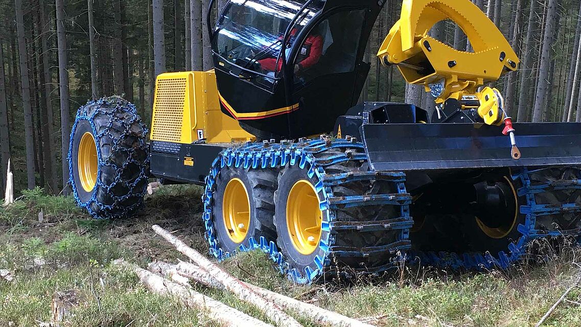 A damaged wheel is very annoying and takes valuable time. Forestry chains and tracks protects our wheels from being damaged by tree stumps and stones. They do not only provide maximum grip and soil protection on different terrains, they also raise efficiency while working. Time consuming and cost intensive reparations on the machine can be prevented. Thus, for working professionally in the forest, pewag chains and tracks are a valuable support.