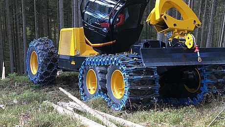 Everybody knows that it is of high importance to guarantee safety while working in the forest. The machines are getting bigger, more expensive and have up to 10 wheels. Every mistake has disastrous consequences on people as well as vehicles. Hence, forestry chains and tracks offers a very important safety aspects for working in the forest.
