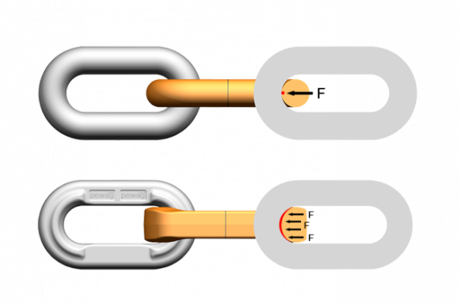- The geometry of traditional round steel chains provides a small interlink contact area and subsequent high stresses.
